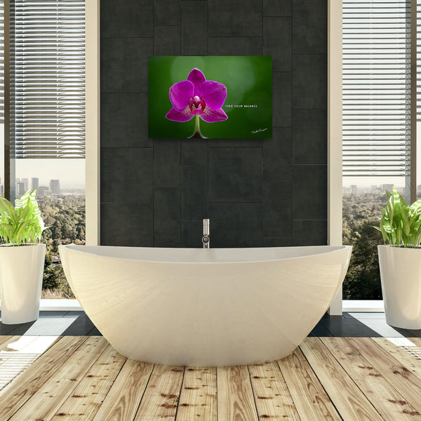 This striking art print features a vibrant purple bloom against a lush green background. The rewards of finding your balance depicted in life from this photo are harmony, peace, and time to do what you value most.