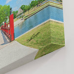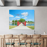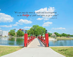 Step into the heart of Huntsville, Alabama with this inspiring photograph featuring the Red Bridge at Big Spring Park on a bright, sunny day. The vivid tones and tranquil reflection capture both the beauty and symbolism of this beloved landmark. Paired with the meaningful quote by Sterling W. Sill — “We can cross the rivers of doubt and discouragement on the bridge of faith even before we get to them.” — this image serves as a visual reminder of hope, perseverance, and belief.
