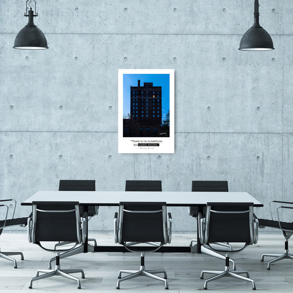 Ignite the drive and commitment in your office, home study, or workspace with this compelling motivational art print, "No Substitute for Hard Work."