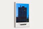 This stunning photograph, captured by Neville Simpson, features a towering, historic building silhouetted against a deep twilight sky. The dark facade of brick and blue-toned windows is dramatically punctuated by a single, glowing window—a brilliant beacon of effort and persistence in the late hour. It's a vivid visual metaphor for the dedication and sacrifice required to succeed.