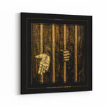 Inspired by Matthew 25:36, the artwork by Neville Simpson uses deep shadows and glowing highlights to convey a message of hope, connection, and the call to remember those incarcerated. It’s a compelling piece for any space seeking a bold, spiritual statement.
