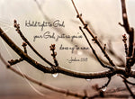 The print features the encouraging scripture from Joshua 23:8: "Hold tight to God, your God, just as you've done up to now." This beautiful piece is a daily reminder of faith, endurance, and steadfast commitment. It's a perfect, thoughtful addition to any home office, quiet reading nook, or living space where peace and reflection are valued.