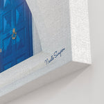Open the door to possibility with this elegant and inspiring art print. Featuring a captivating deep blue door with a classic gold knocker, framed by pristine white Greek-inspired architecture, this image symbolizes new beginnings and divine invitations.