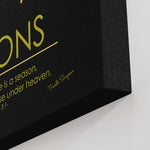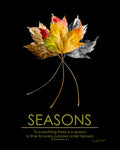 Below the striking visual, the word "SEASONS" stands boldly above the timeless scripture from Ecclesiastes 3:1: "To everything there is a season, A time for every purpose under heaven." This piece is a beautiful, grounding reminder that every phase of life has its unique purpose. It makes an elegant and deeply meaningful addition to any living area, library, or office.