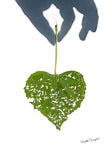 Experience the comfort of faith with this uniquely symbolic art print. A damaged, yet resilient, heart-shaped green leaf rests against a pure white background, casting a dramatic shadow from a hand above. This piece beautifully illustrates the comforting truth that God is The Good Shepherd who has never lost a sheep.