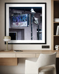Set against a textured French Quarter wall with classic street details like the vintage lamp and security camera, this print blends raw urban atmosphere with iconic jazz imagery. Perfect for music lovers, nightlife enthusiasts, and anyone who wants a statement piece full of personality and movement.
