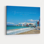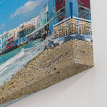 Be captivated by the stunning beauty of the Aegean Sea and the classic white architecture of the Greek Isles in this breathtaking print. The image captures the vibrant blue sky and turquoise water contrasting with the iconic buildings of Mykonos' Little Venice.